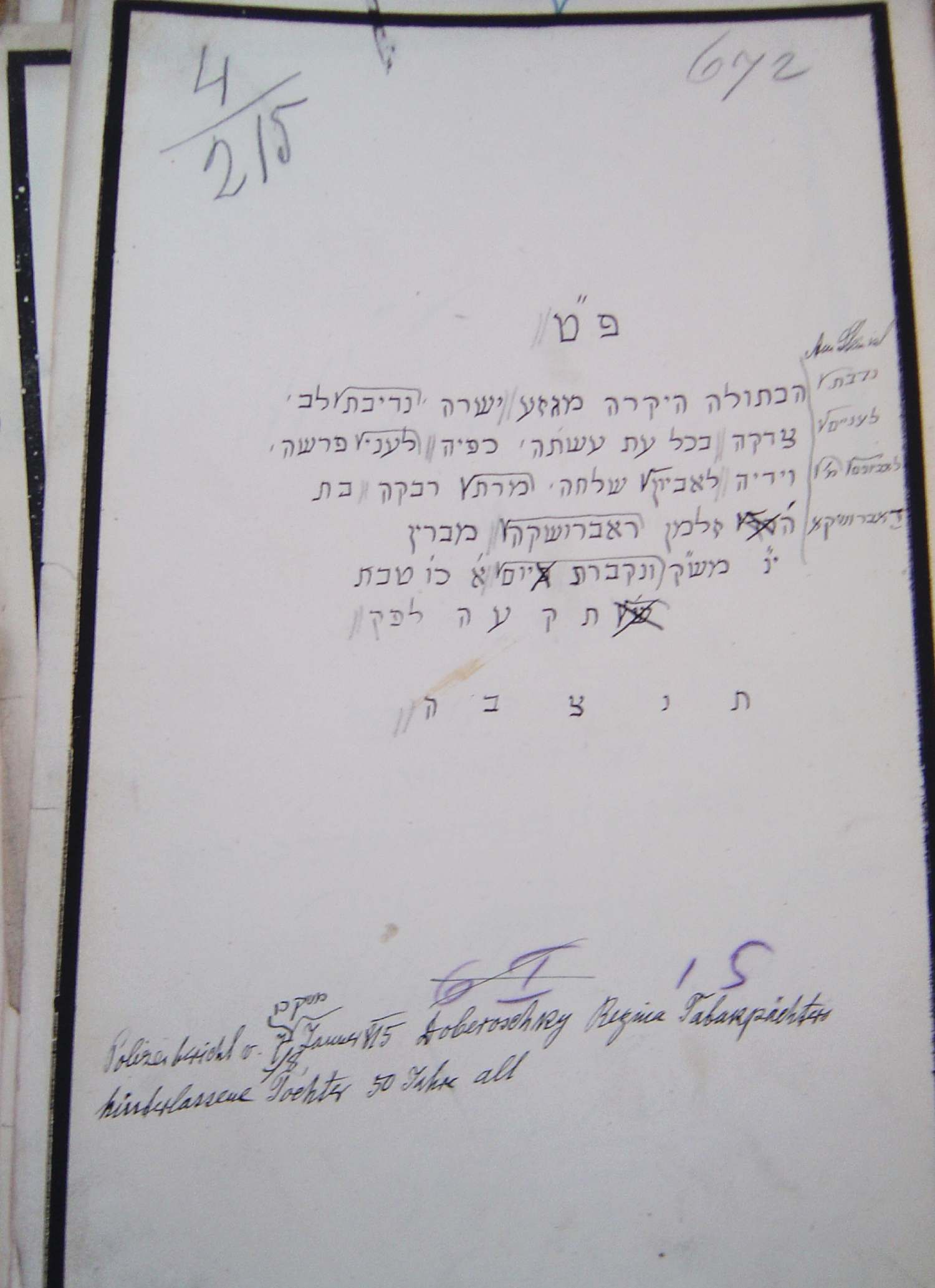| [7] Tochter d(es Herrn) Salman Dobruschka | בת ה זלמן דאברושקה |